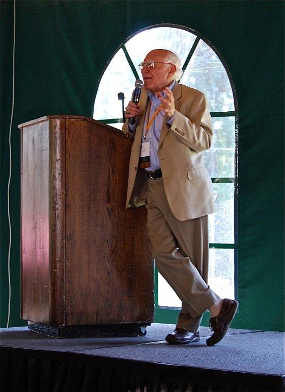 The name Pesso Boyden System Psychomotor (PBSP) carries the history of the unique approach of Al Pesso. It was developed over the years in partnership with his lovely wife, Diane. It’s a therapeutic approach designed to free people for a full expression of life’s genetic promise or, as his pre-conference said, “the drive for happiness in an imperfect world.” I have the privilege today of introducing Al, one of our true pioneers, whom I met with Diane in this hotel at our first conference 14 years ago. I attended his first workshop here, when he was doing a very different form of work.
